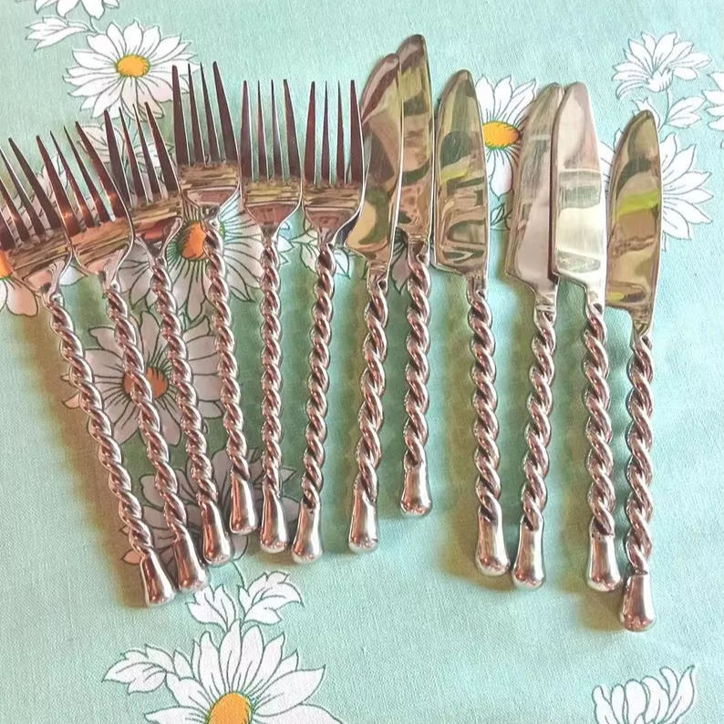 ชุดเครื่องใช้บนโต๊ะอาหารชุดเครื่องใช้บนโต๊ะอาหารทำจากเหล็กเคลือบเงินสิบสองชุดอุปกรณ์สำหรับเสิร์ฟปลาลายดอกไม้