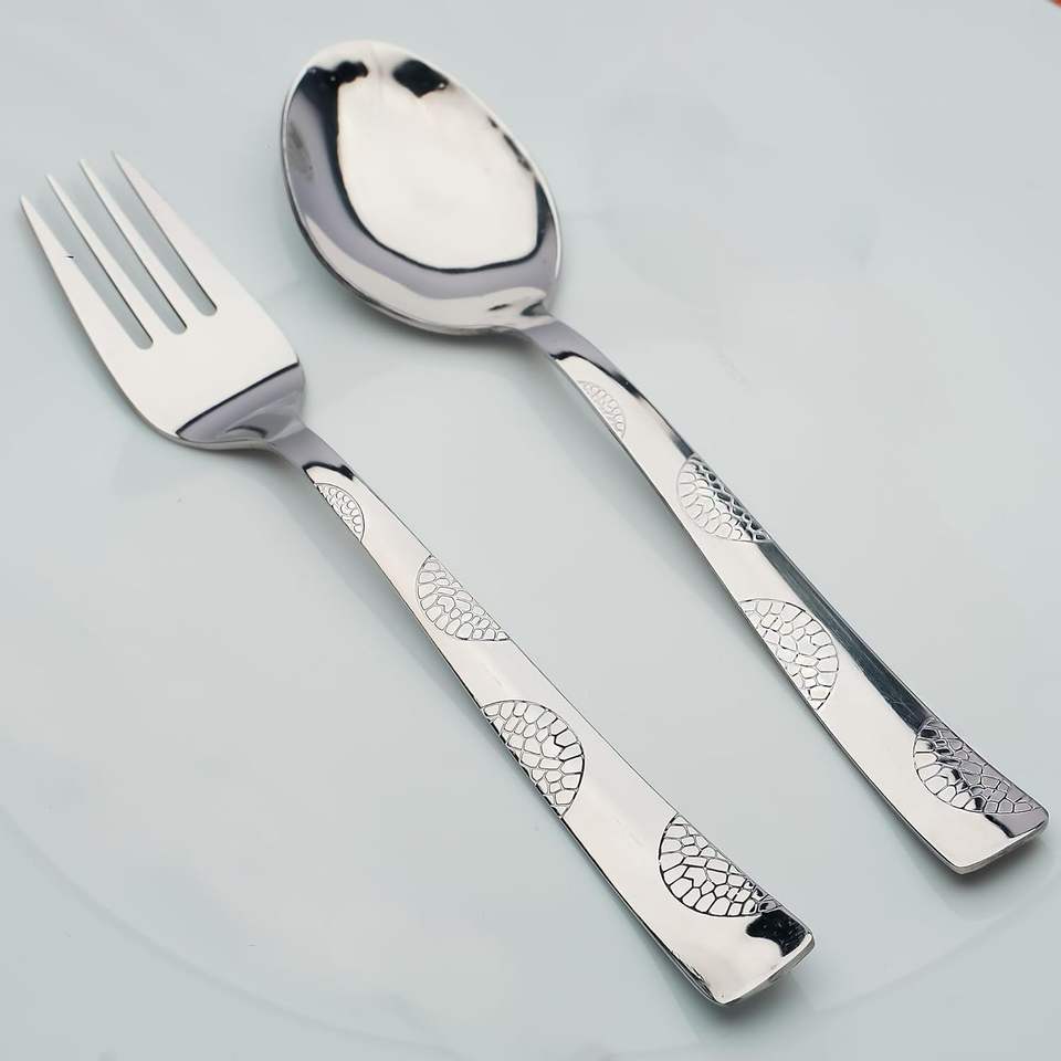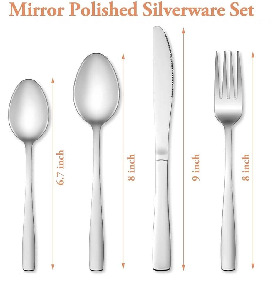 ชุดช้อนส้อมสแตนเลส 4 ชิ้น สีเงิน ชุดช้อนส้อมมีดส้อมสแตนเลสแบบซาติน ช้อนทานอาหาร ชุดช้อนส้อมแบบผสม