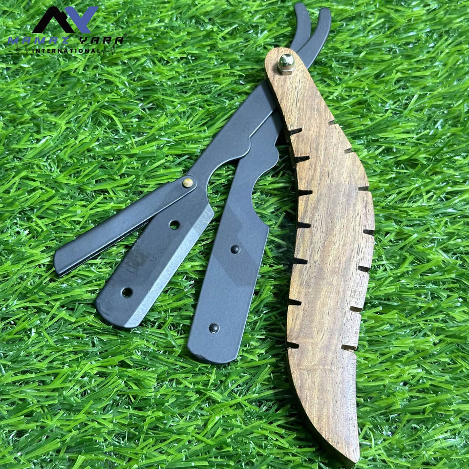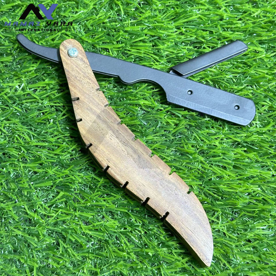 มีดโกนตัดผมระดับมืออาชีพพร้อมด้ามไม้ มีดโกนหนวดแบบคลาสสิกสำหรับผู้ชาย มีดโกนตรงแบบปรับแต่งได้