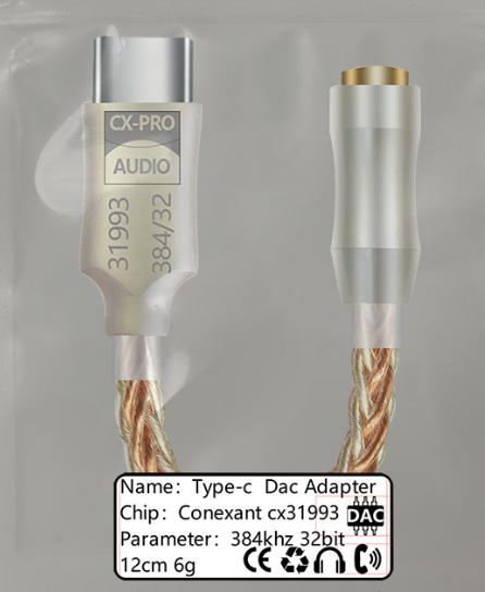 Cx31993 ตัวถอดรหัสเสียงดิจิตอลแบบเสียบหูฟัง ชนิด Type-C ตัวแปลงสัญญาณเสียง DAC สำหรับโทรศัพท์มือถือ อะแดปเตอร์หูฟัง USB