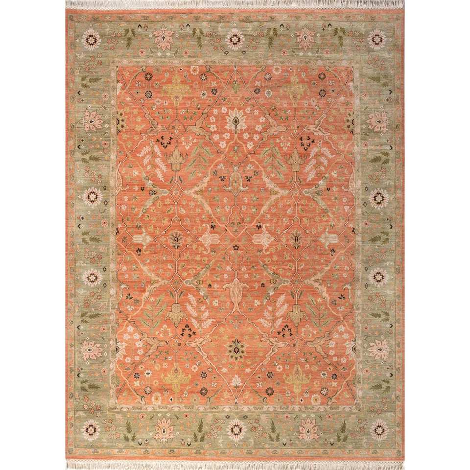 พรมขนสัตว์ถักมือขนาดใหญ่ลายดอกไม้สีแดงและสีส้มสำหรับห้องนั่งเล่น ห้องโถง ทางเดิน รูปทรงสี่เหลี่ยมผืนผ้า รุ่น Micv