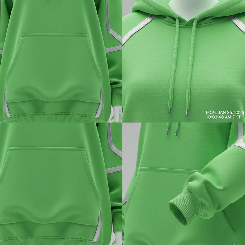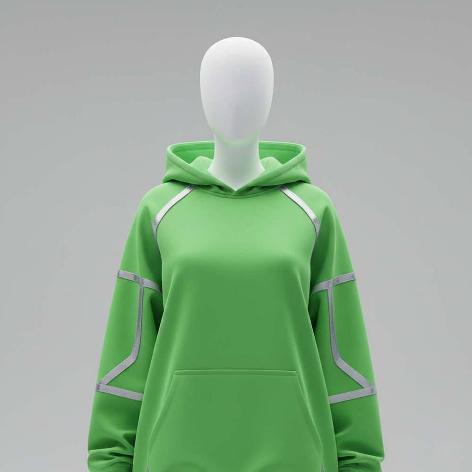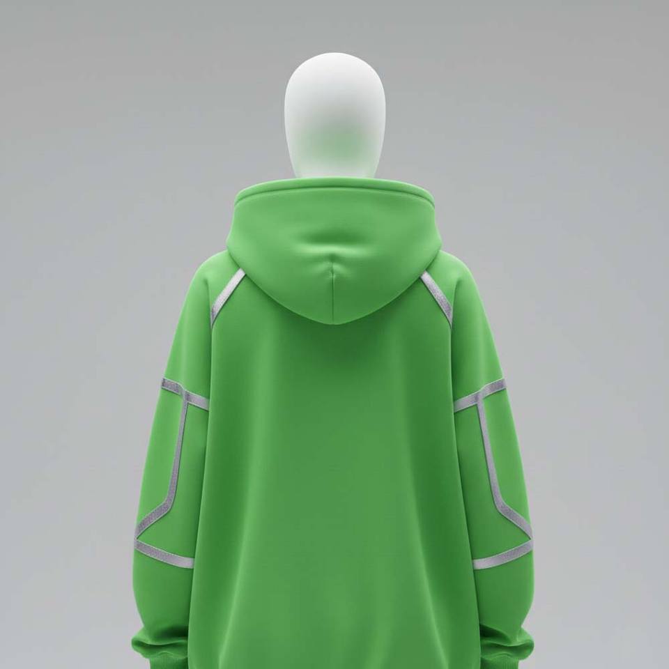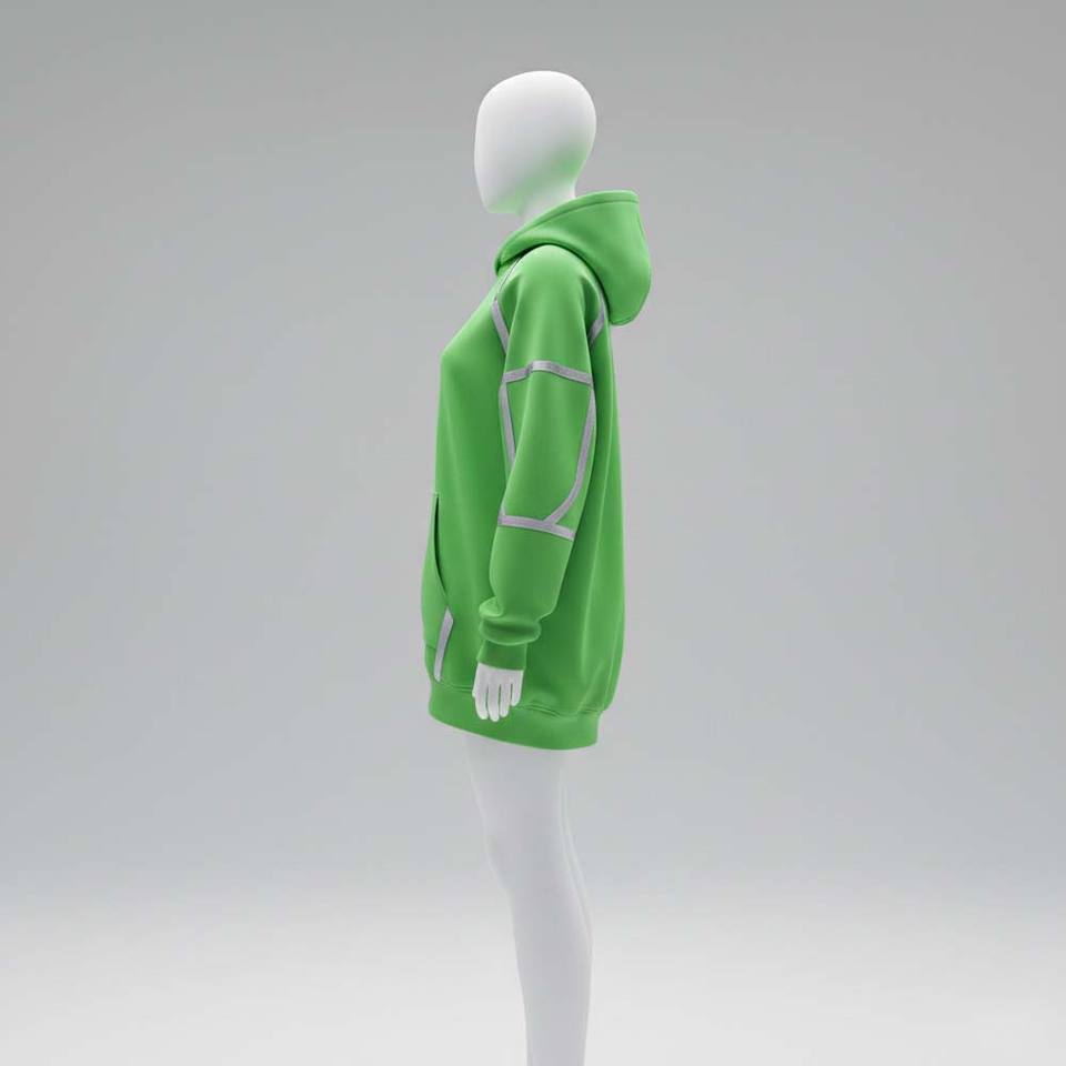 Cyber Tech Aesthetic Printed Neon Green Winter Knitted Front Oversized Casual Women Hoodie Premium Streetwear Sweatshirt