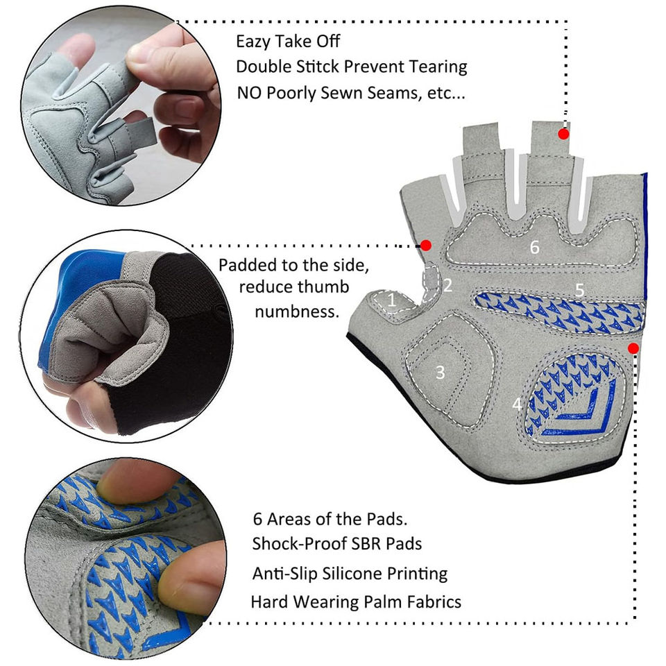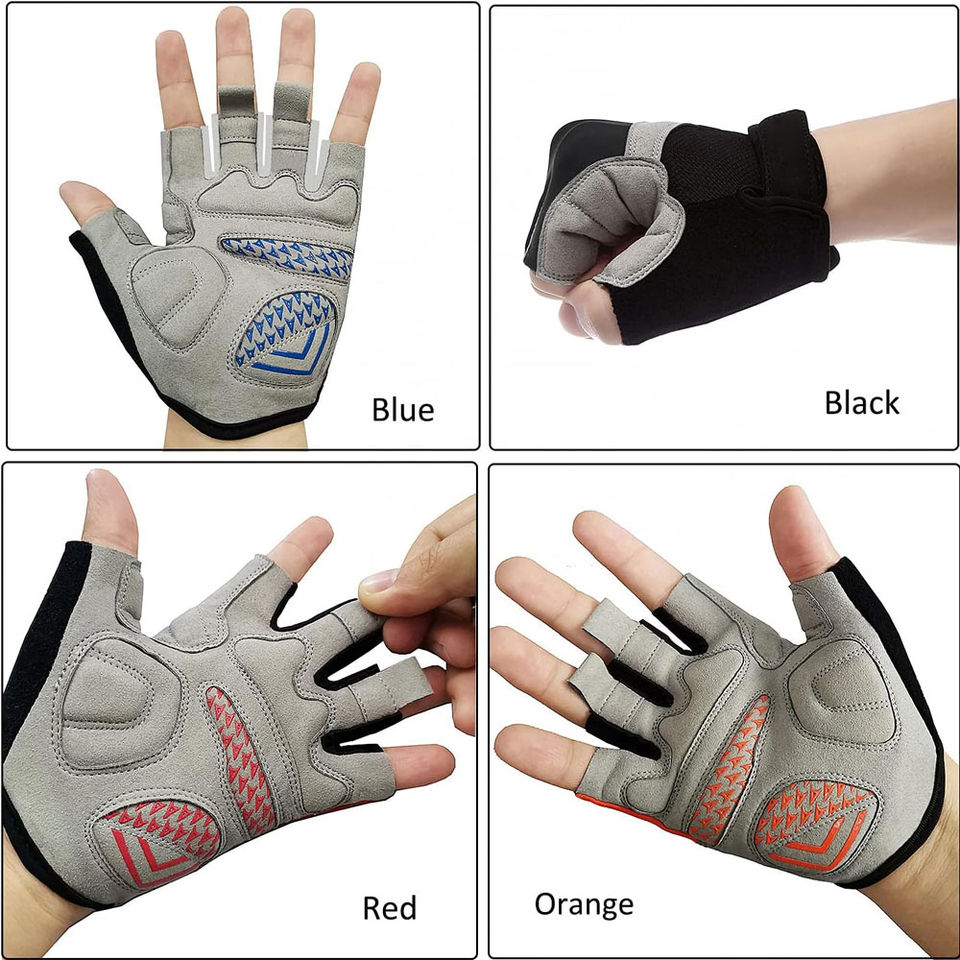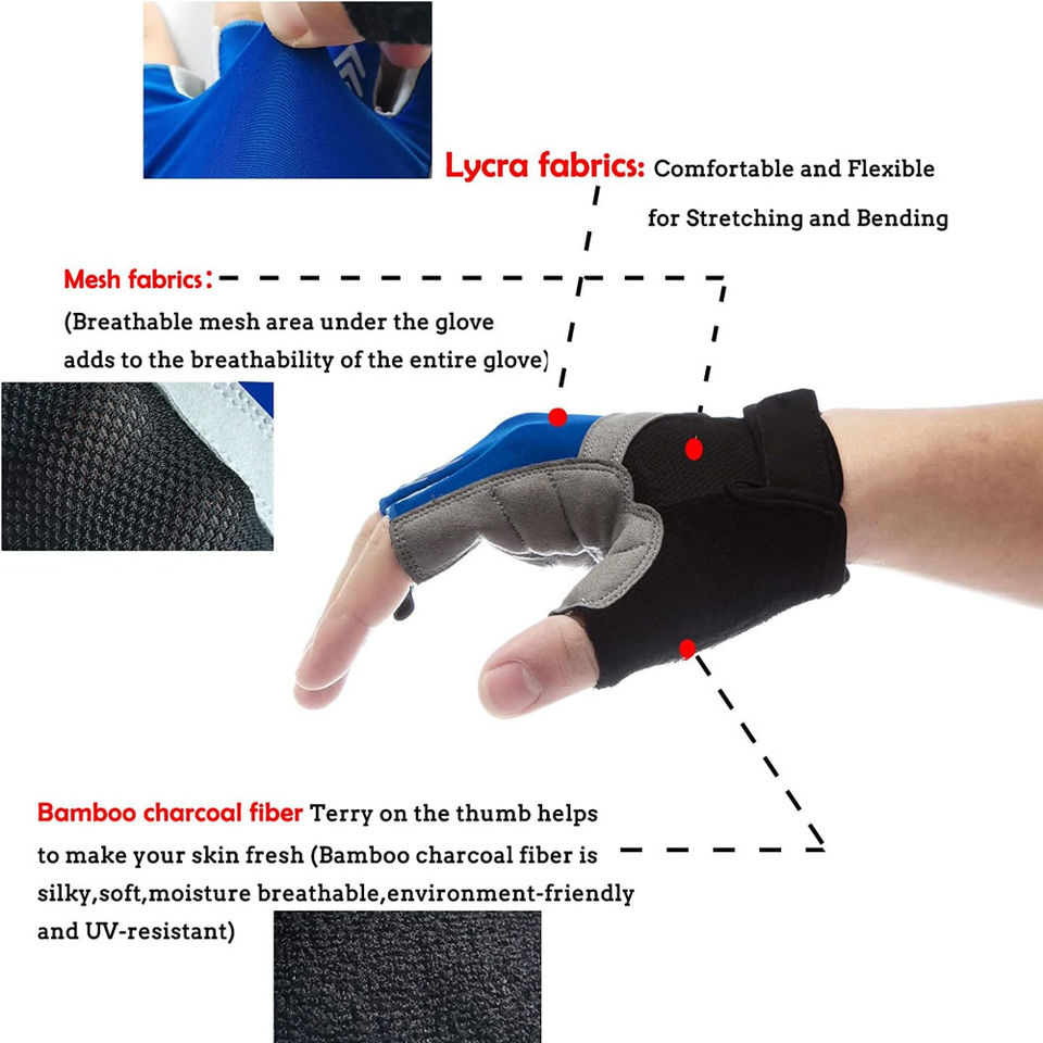 ถุงมือปั่นจักรยานแบบครึ่งนิ้ว ถุงมือฟิตเนสสำหรับผู้ชายและผู้หญิงสำหรับการฝึกซ้อม วัสดุไนลอนน้ำหนักเบา ระบายอากาศได้ดีและสะดวกสบาย