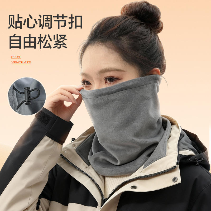 หน้ากากปั่นจักรยานผ้าฟลีซอุ่นคอปรับได้กันลมสำหรับทุกเพศกีฬาฤดูหนาวกลางแจ้งผ้าปิดหน้าสีเทาสีดำสีขาวน้ำนมสีเทาเข้ม