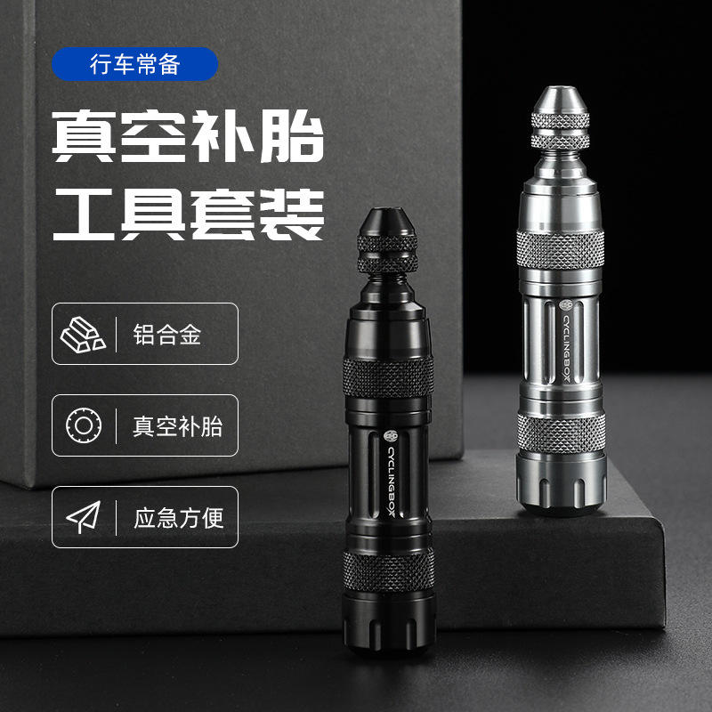 ชุดซ่อมยางจักรยานแบบพกพา วัสดุอลูมิเนียมอัลลอยด์ พร้อมอุปกรณ์ปิดผนึกสูญญากาศ สำหรับจักรยาน มอเตอร์ไซค์ และรถยนต์