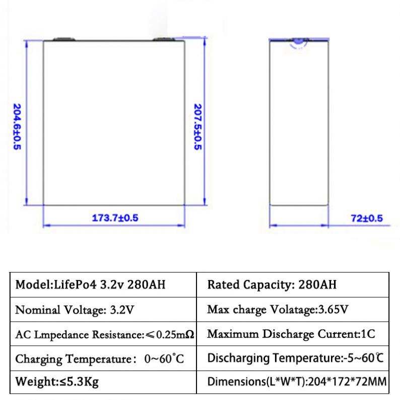 Product name:280Ah Lifepo4 cell