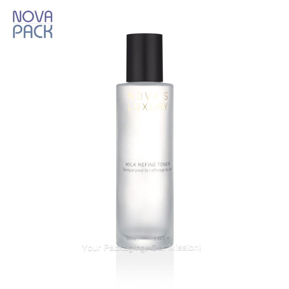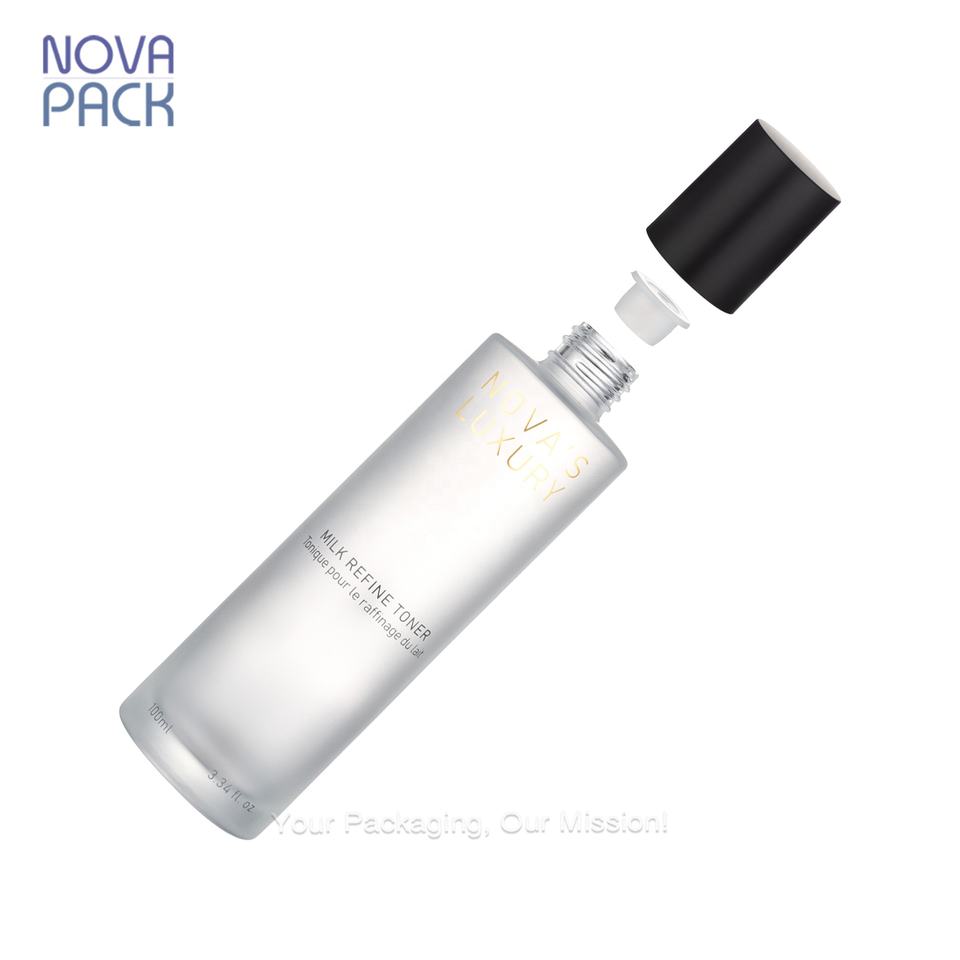Cylinder Frosted Glass Essence Oil Bottle 100ml Facial Oil Toner Bottle Tanning Oil Moisturizer Bottle With Insert Black Cap