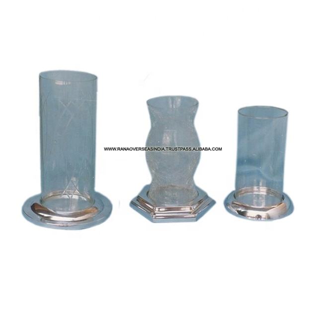 กระบอกแก้วรูปเทียนทีไลท์พร้อมฐานอลูมิเนียมสำหรับตกแต่งโต๊ะปาร์ตี้