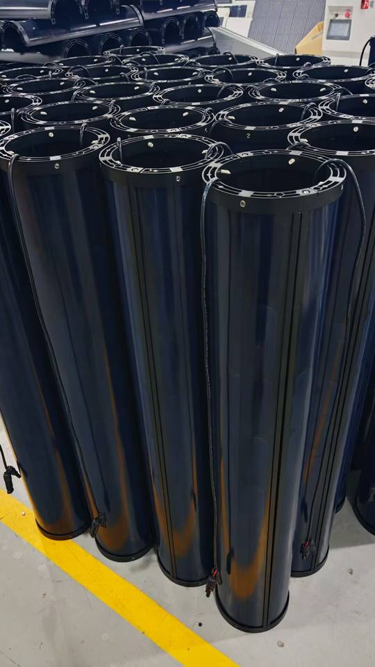 แผงโซลาร์เซลล์ทรงกระบอกแบบติดตั้งบนเสาทรงกลม กำลังไฟ 100W 150W 200W แบบหลังคาทรงกระบอก แผงโซลาร์เซลล์ LED สำหรับภายนอกอาคาร แบบติดตั้งแนวตั้ง