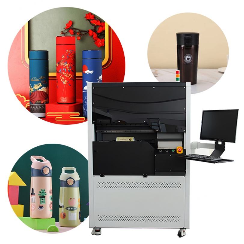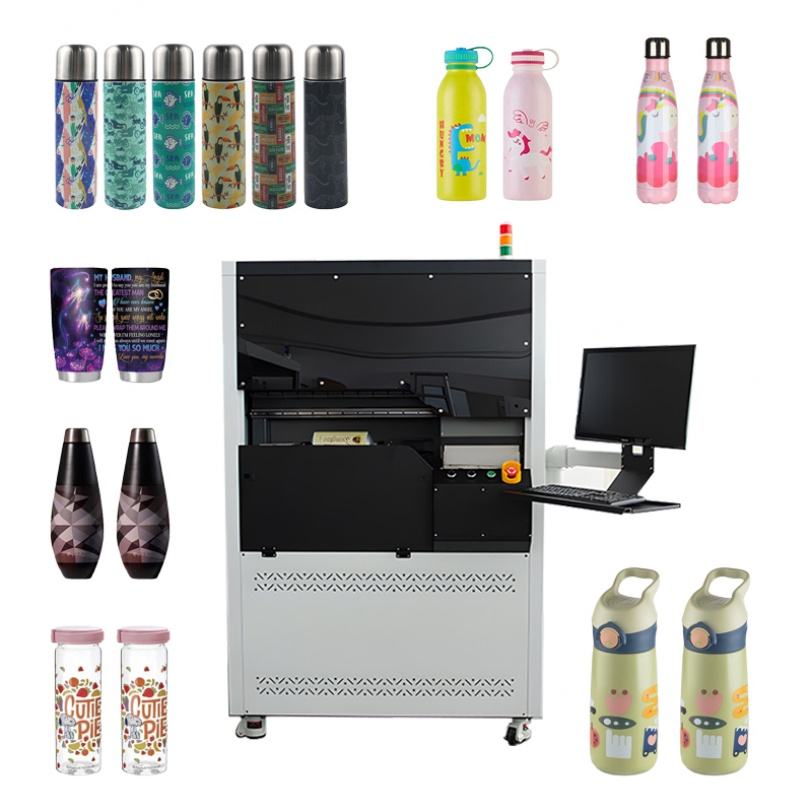 เครื่องพิมพ์ยูวีสำหรับขวดทรงกระบอก เครื่องพิมพ์ยูวี 360 องศา เครื่องพิมพ์ดิจิตอลแบบโรตารี่สำหรับแก้วน้ำร้อนและแก้วมัค