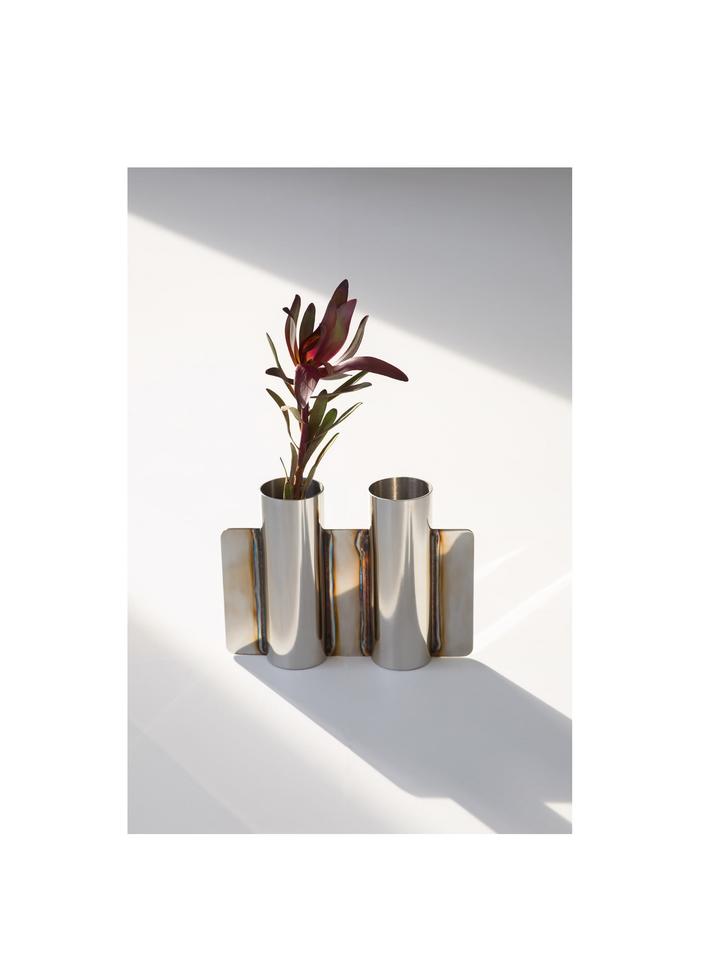 แจกันดอกไม้อลูมิเนียมทรงกระบอกที่มีพื้นผิวขัดเงาและเสน่ห์แบบมินิมอลเหมาะสำหรับห้องครัวหรือทางเข้าที่ทันสมัย