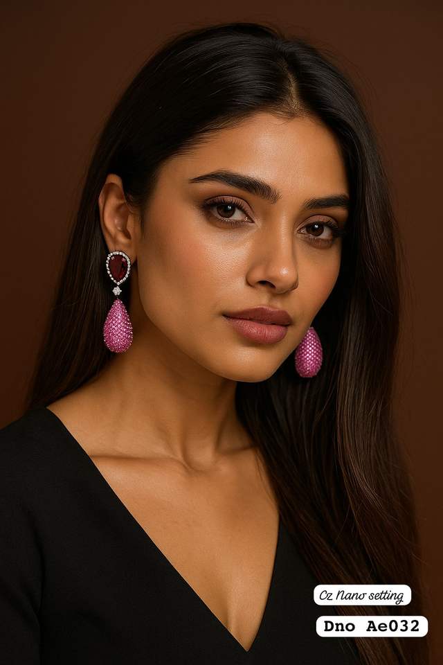ต่างหูแฟชั่น CZ AD victorian เครื่องประดับทองเหลืองอินเทรนด์กับหิน Moissanite SKU AE 032 SG C1