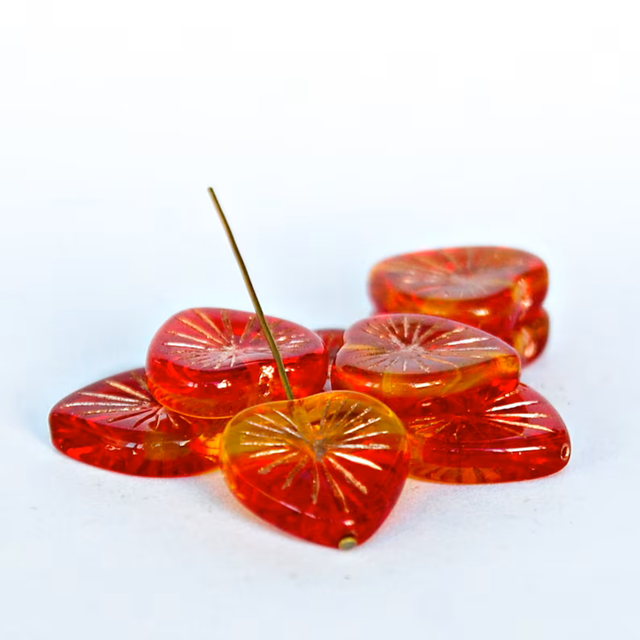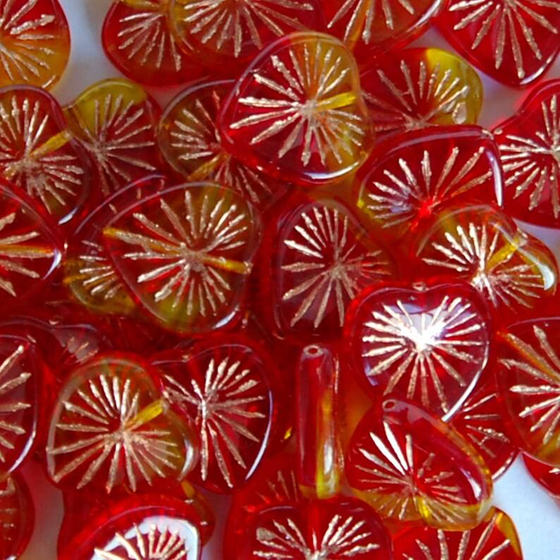 ลูกปัดแก้วรูปหัวใจสีแดงสีเหลืองขนาดใหญ่ของเช็กสำหรับทำเครื่องประดับโคมไฟคริสตัลพรีเมี่ยมและลูกปัดแก้ว