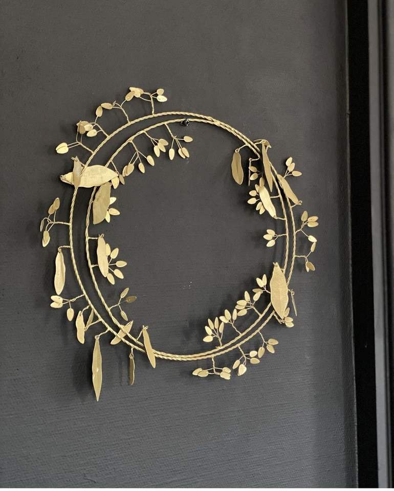 ของตกแต่ง, งานเหล็กดัดติดผนัง, พวงหรีดติดผนังดีไซน์เนอร์, ของตกแต่งผนังสุดหรู, ศิลปะติดผนังสีทองทันสมัย, ของตกแต่งผนังรูปกิ่งไม้โลหะ
