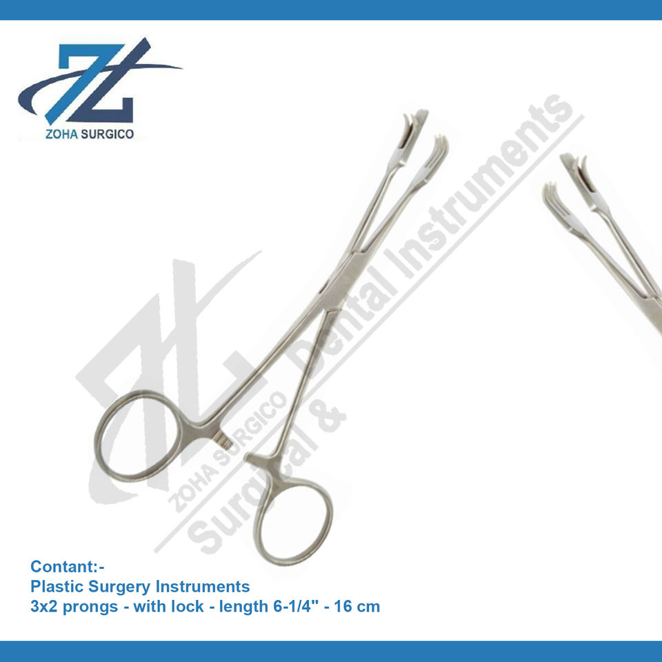 มาร์กเกอร์ยกกระชับใบหน้าทำจากสแตนเลสเครื่องมือผ่าตัดทางทันตกรรม3x2ง่ามพร้อมล็อค6-1/4 ''-16ซม.