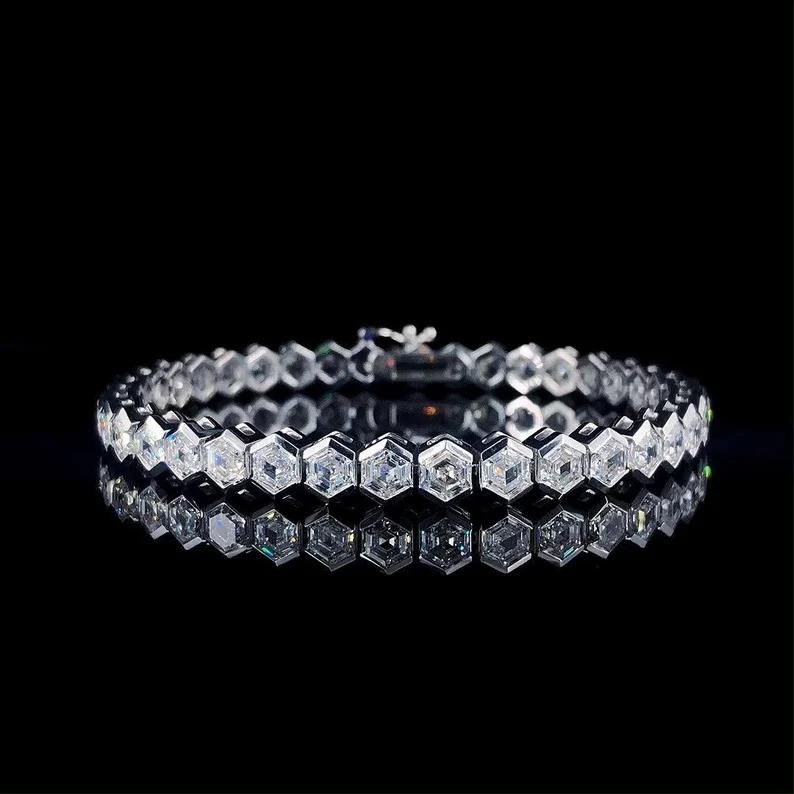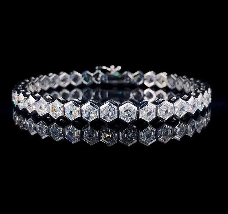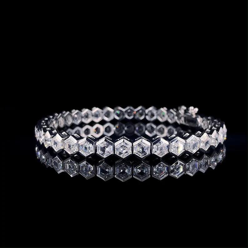 กำไลเพชรทรงหกเหลี่ยมสี D เพชรเลี้ยงในห้องปฏิบัติการ สวยงาม กำไลเงินแท้ 925 คุณภาพเยี่ยม ตัดแบบ VVS สำหรับผู้หญิง ของขวัญงานแต่งงาน