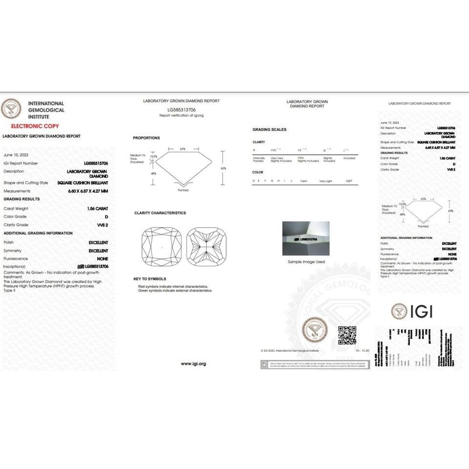 VVS2 D สีใสขนาด1.56 CT ขัด labgrown รูปทรงเบาะเพชร HPHT-CVD เพชรเครื่องประดับเพชรหลวม