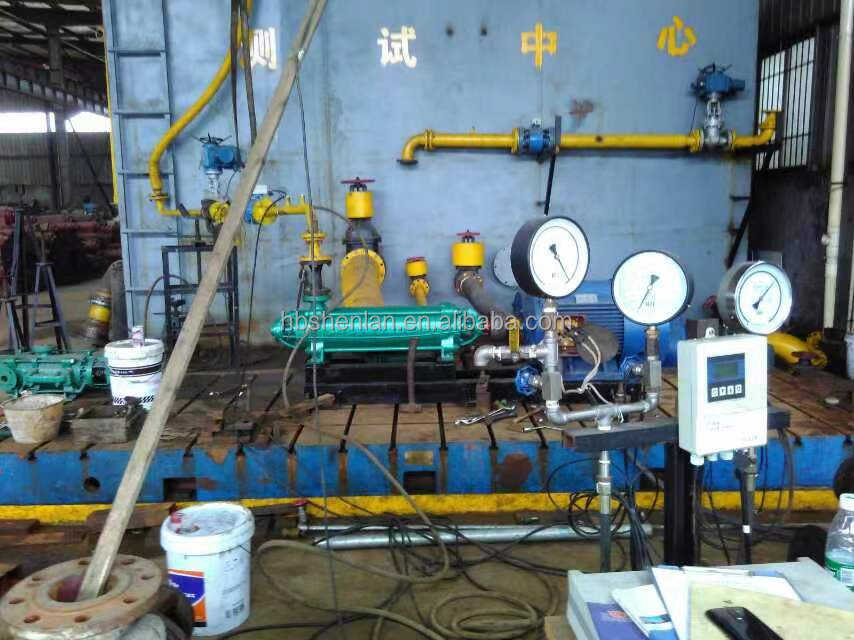 ปั๊มน้ำแรงดันสูงแบบหลายใบพัดแนวนอน D/Dg12-25X10 ขนาด 10 แรงม้า พร้อมช่องจ่ายน้ำขนาด 6 นิ้ว สำหรับป้อนน้ำเข้าหม้อไอน้ำและส่งน้ำแรงดันสูง