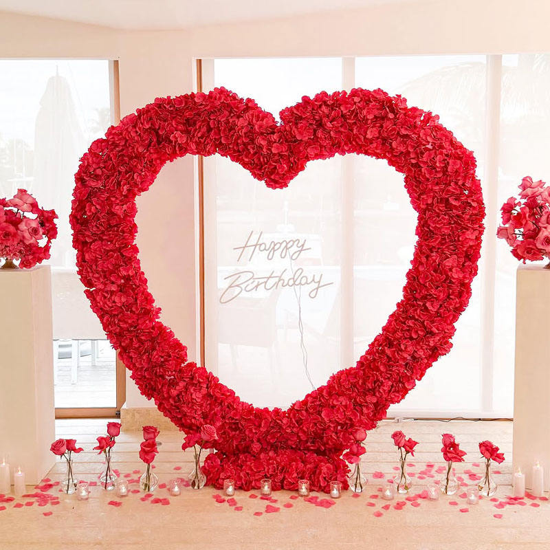 D-FHA023ซุ้มดอกไม้ประดิษฐ์รูปหัวใจสำหรับตกแต่งซุ้มดอกไม้งานแต่งงานรูปหัวใจทำจากผ้าไหมสำหรับตกแต่ง