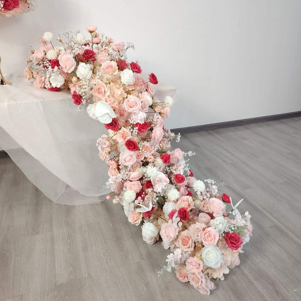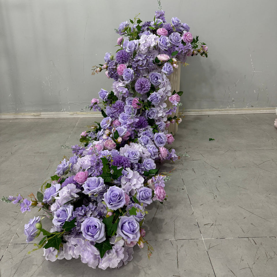 ผ้าปูโต๊ะดอกไม้ประดิษฐ์สีม่วงสำหรับงานแต่งงานผ้าปูโต๊ะทำจากผ้าไหมสำหรับตกแต่งงาน D-FR002