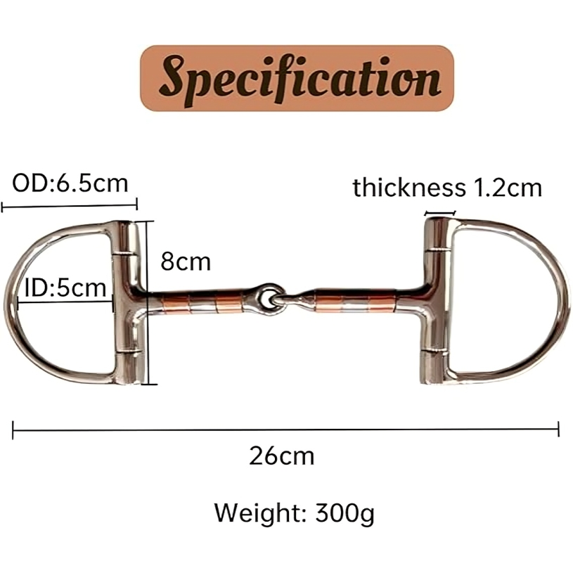 D-ring สแนฟเฟิลบิตเตอร์ม้าพร้อมลูกกลิ้งทองแดงกระบอกต่อเดี่ยวขี่ม้าสแตนเลสสตีลและไม้ฝึกซ้อม