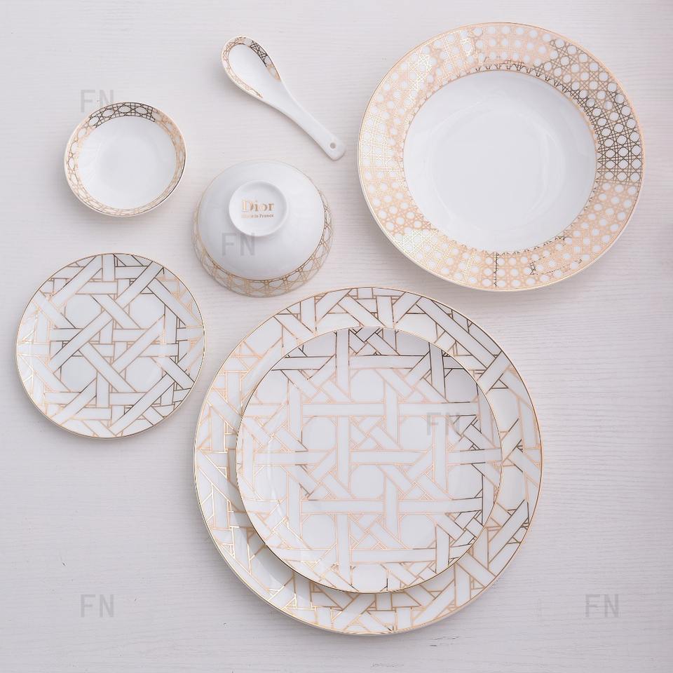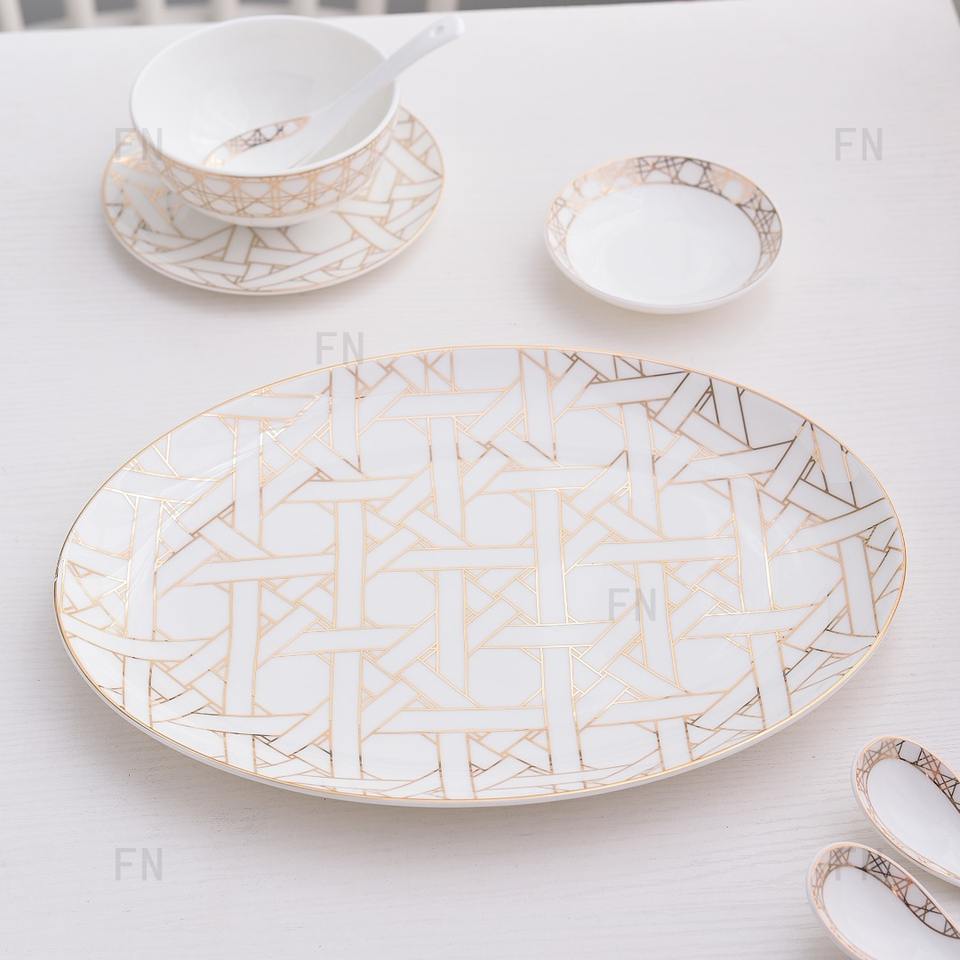 ชุดเครื่องใช้บนโต๊ะอาหารขอบทอง28ชิ้นชุดรับประทานอาหารเซรามิกกระดูกจีนจานใช้ในงานแต่งงานแบบยั่งยืนพร้อมกล่องของขวัญ