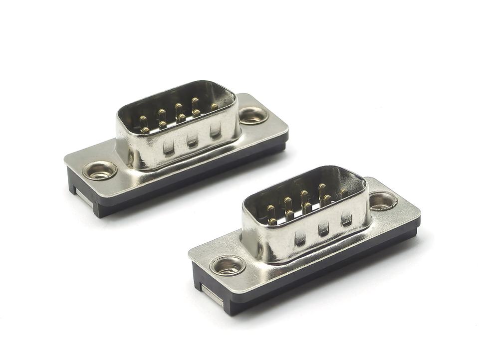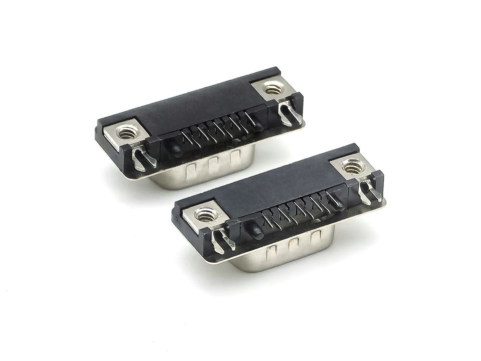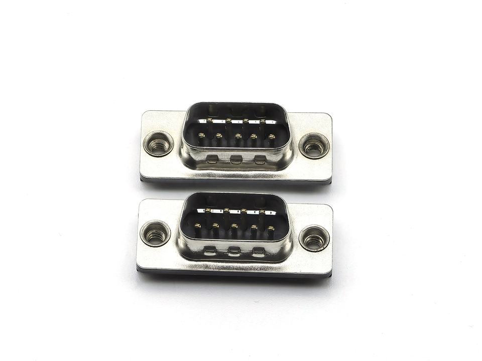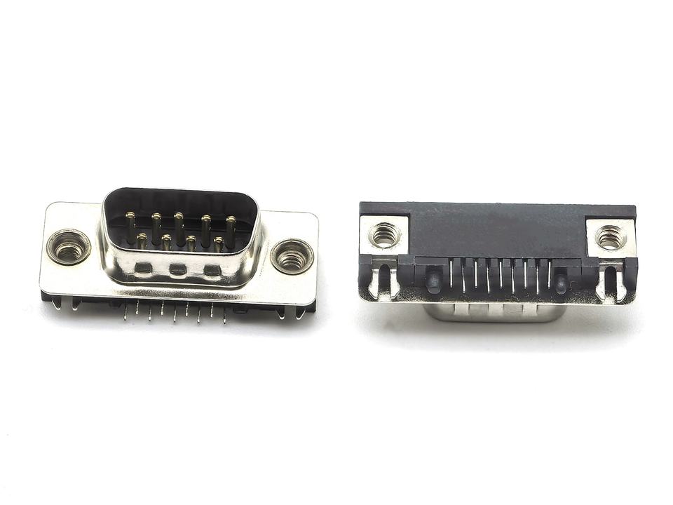 D-Sub Slim Type 09P Male Dip 90 Rivet with Boardlock Separated Jackscrew and Footprint 1.5mm Black D-Sub Connectors