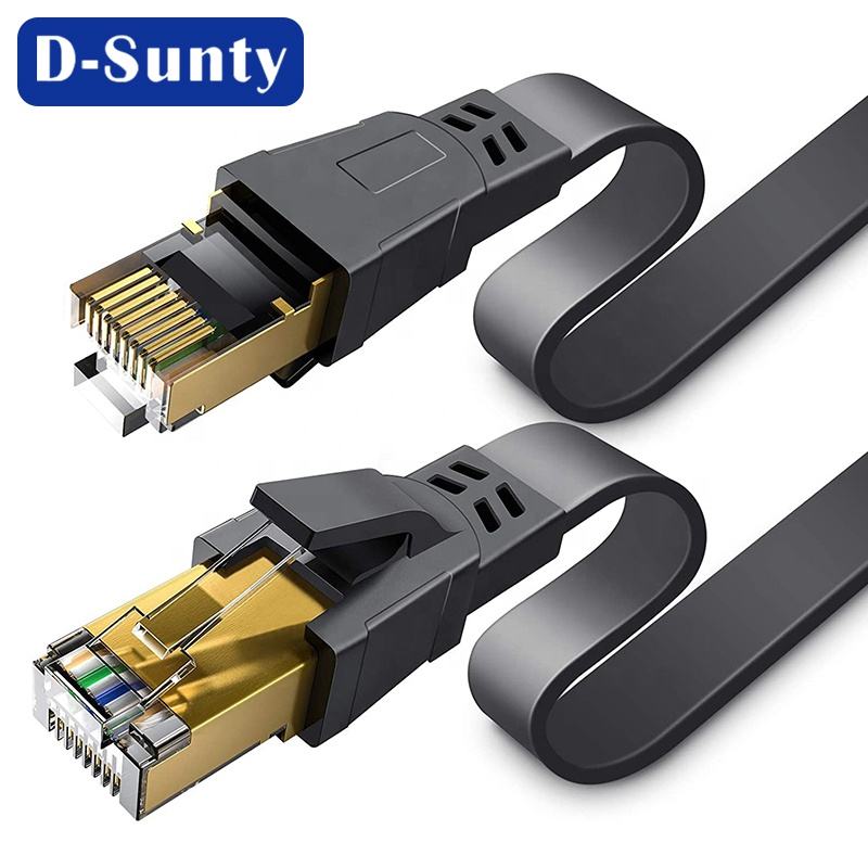 สายแพทช์อีเธอร์เน็ตแบบแบน D-Sunty Cat8 S/FTP ทองแดงแท่ง 30AWG 4 คู่ RJ45 สายแลน 1ม. 2ม. 3ม. 5ม. 8ม. มาตรฐาน RoHS