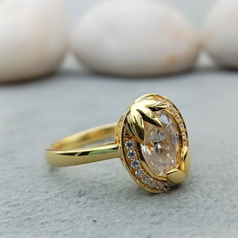 แหวนแต่งงานทรงรีทันสมัยจาก D'VINS JEWELS ประดับเพชรทรงบริลเลียนต์สี D ขาว ผลิตในห้องปฏิบัติการ เคลือบสีเงินและทอง