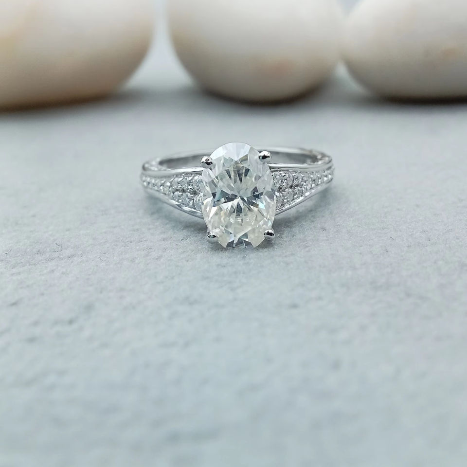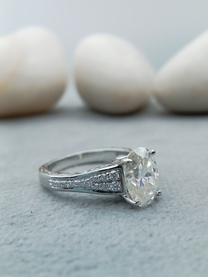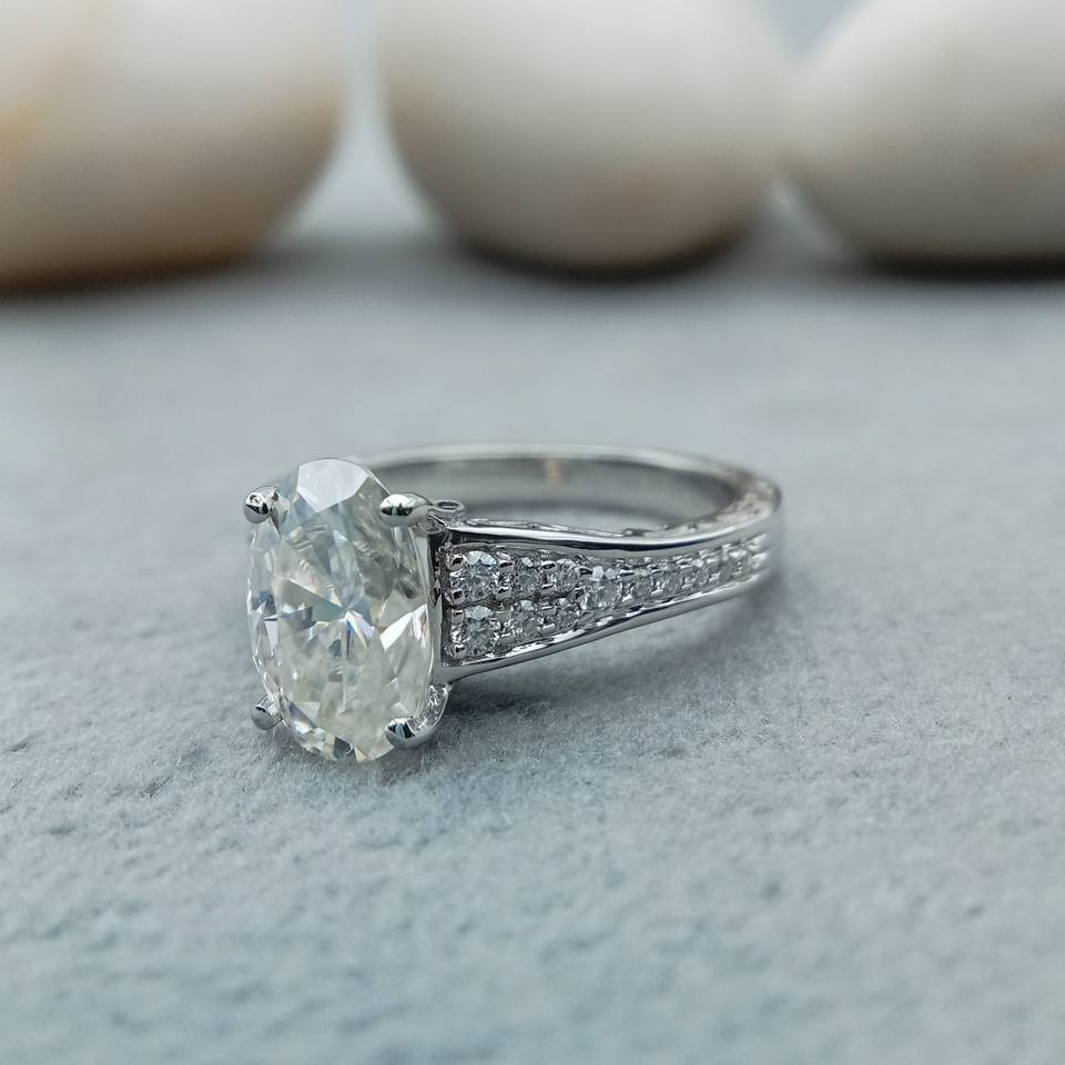 แหวนแต่งงานทรงรีทันสมัยจาก D'VINS JEWELS ประดับเพชรทรงเหลี่ยมเจียระไนแบบ Brilliant Cut สี D ชุบทองคำขาว พร้อมใบรับรอง