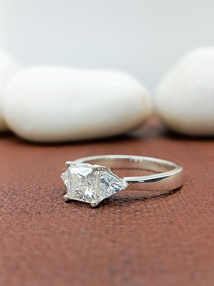 D'vins Jewels แหวนแต่งงานทรงสามเหลี่ยมสำหรับเจ้าหญิงทันสมัยประดับด้วยพลอยสีขาวทองเงิน