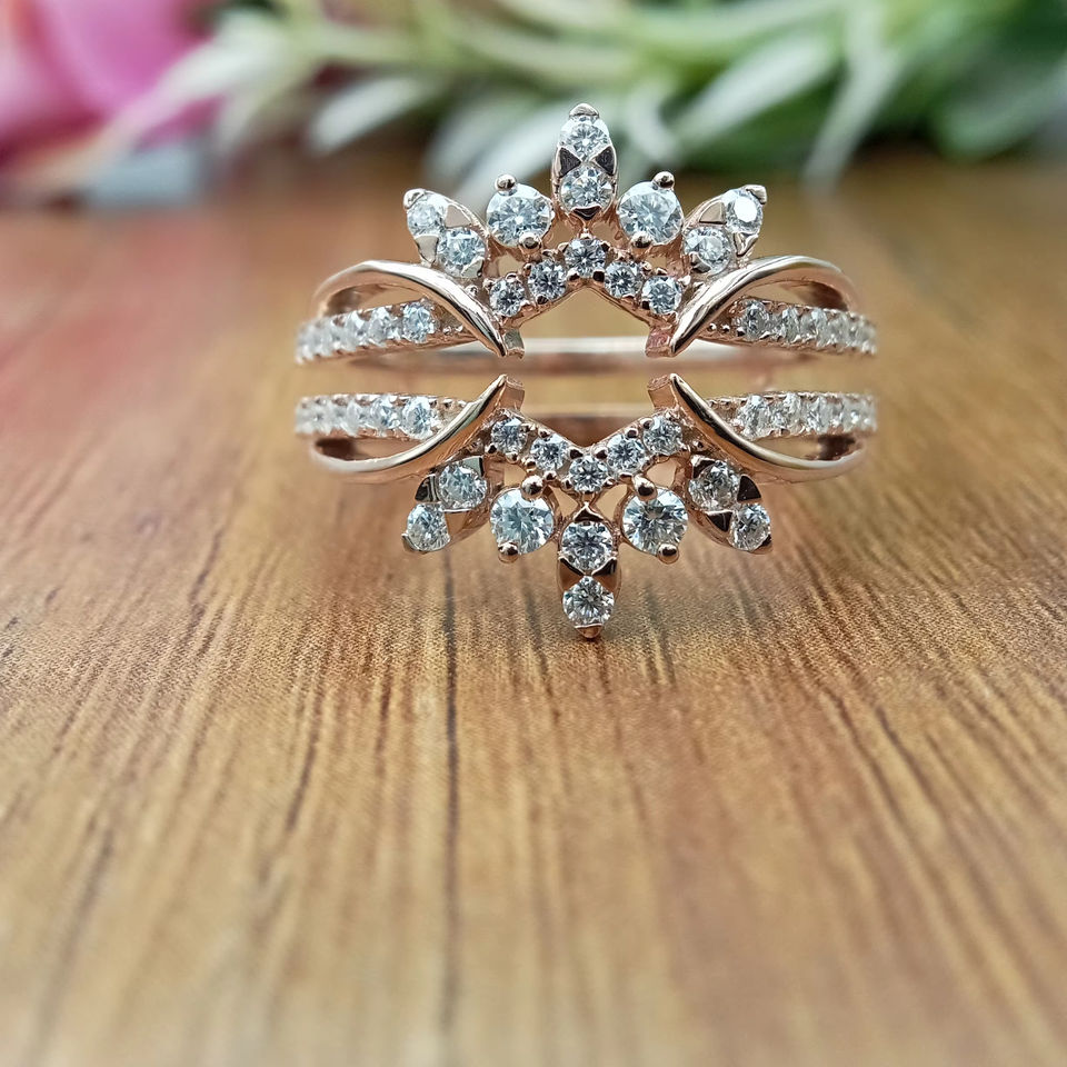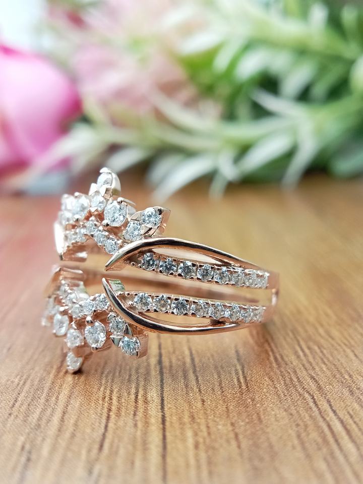แหวนแต่งงานทรงทันสมัย D'VINS JEWELS ประดับเพชรทรงบริลเลียนต์ สี D ขาว โรสโกลด์ สำหรับทองคำที่ได้รับการรับรองจากห้องปฏิบัติการ