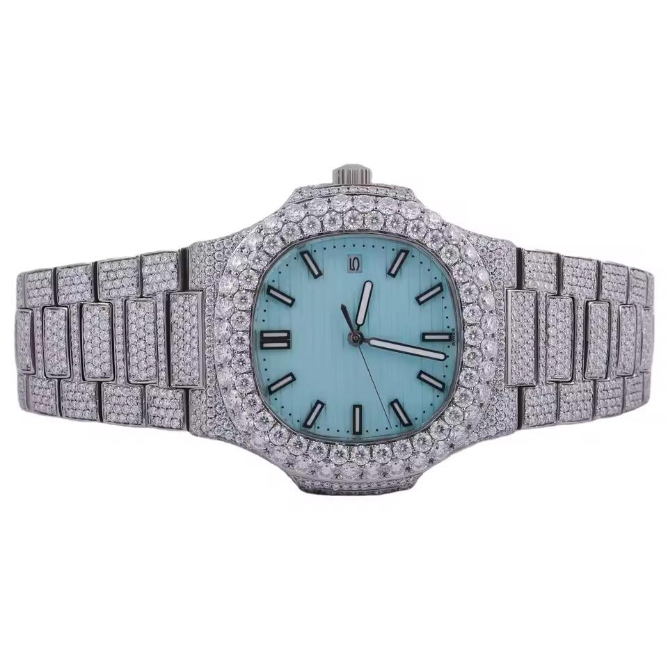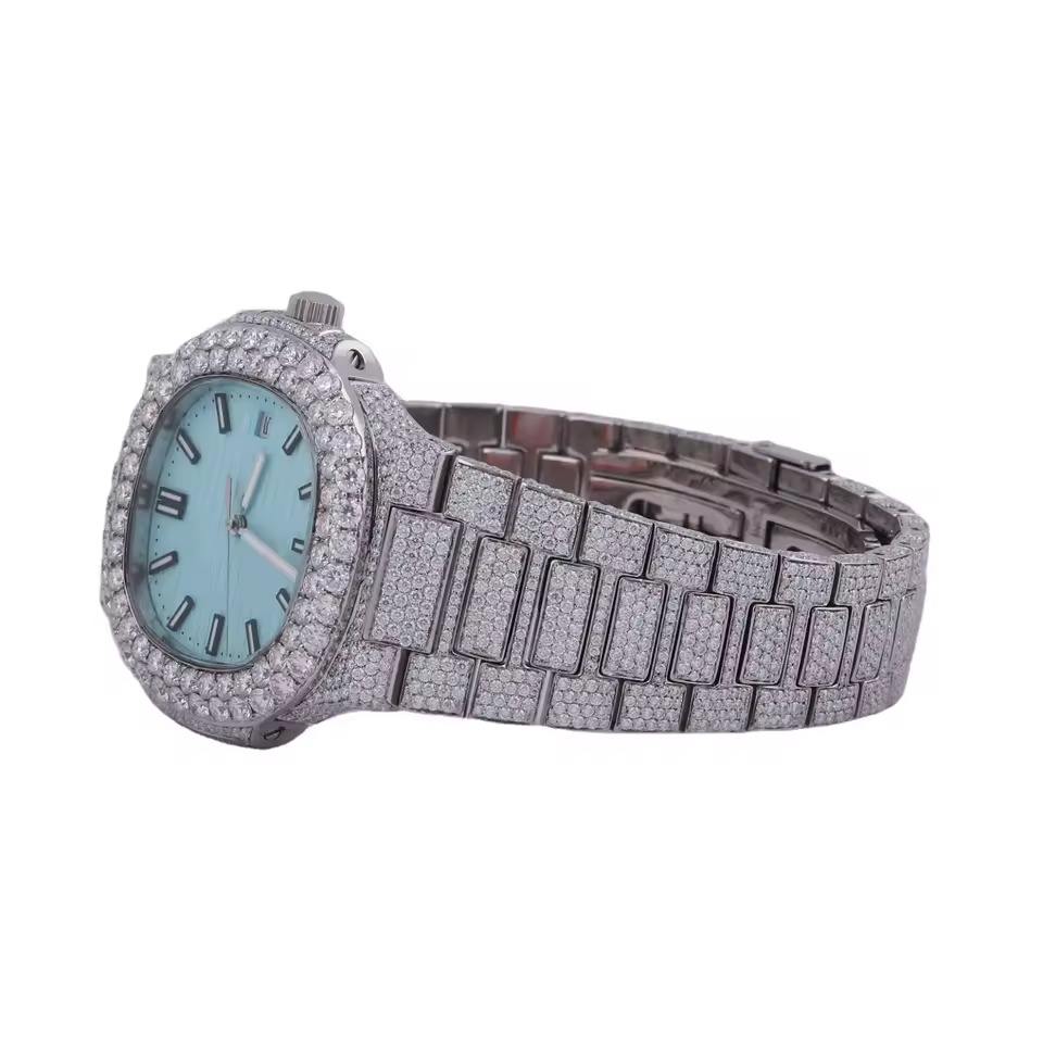นาฬิกาฮิปฮอปสแตนเลสสตีลคุณภาพสูง D VVS ประดับเพชรโมอิสซาไนต์เต็มเรือน งานแฮนด์เมดสั่งทำพิเศษ ราคาขายส่ง