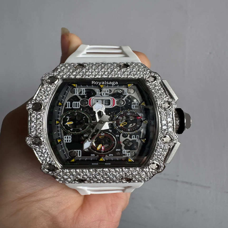 D VVS มอยส์ซาไนต์ ไดมอนด์ เคส ลักชัวรี เมน เมคคานิคอล วอทช์ แซฟไฟร์ คริสตัล สแตนเลส สตีล สายยางแบบกำหนดเอง รุ่นลิมิเต็ด