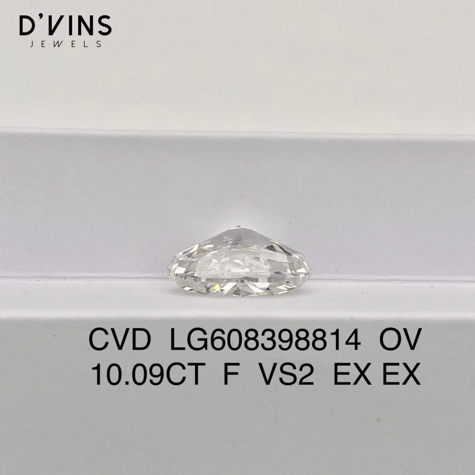 เพชร D'vins Jewels แบบสั่งทำพิเศษ F VS2 10.09 กะรัต CVD รูปทรงวงรี เพชรเพาะเลี้ยงในห้องปฏิบัติการ สำหรับทำเครื่องประดับ