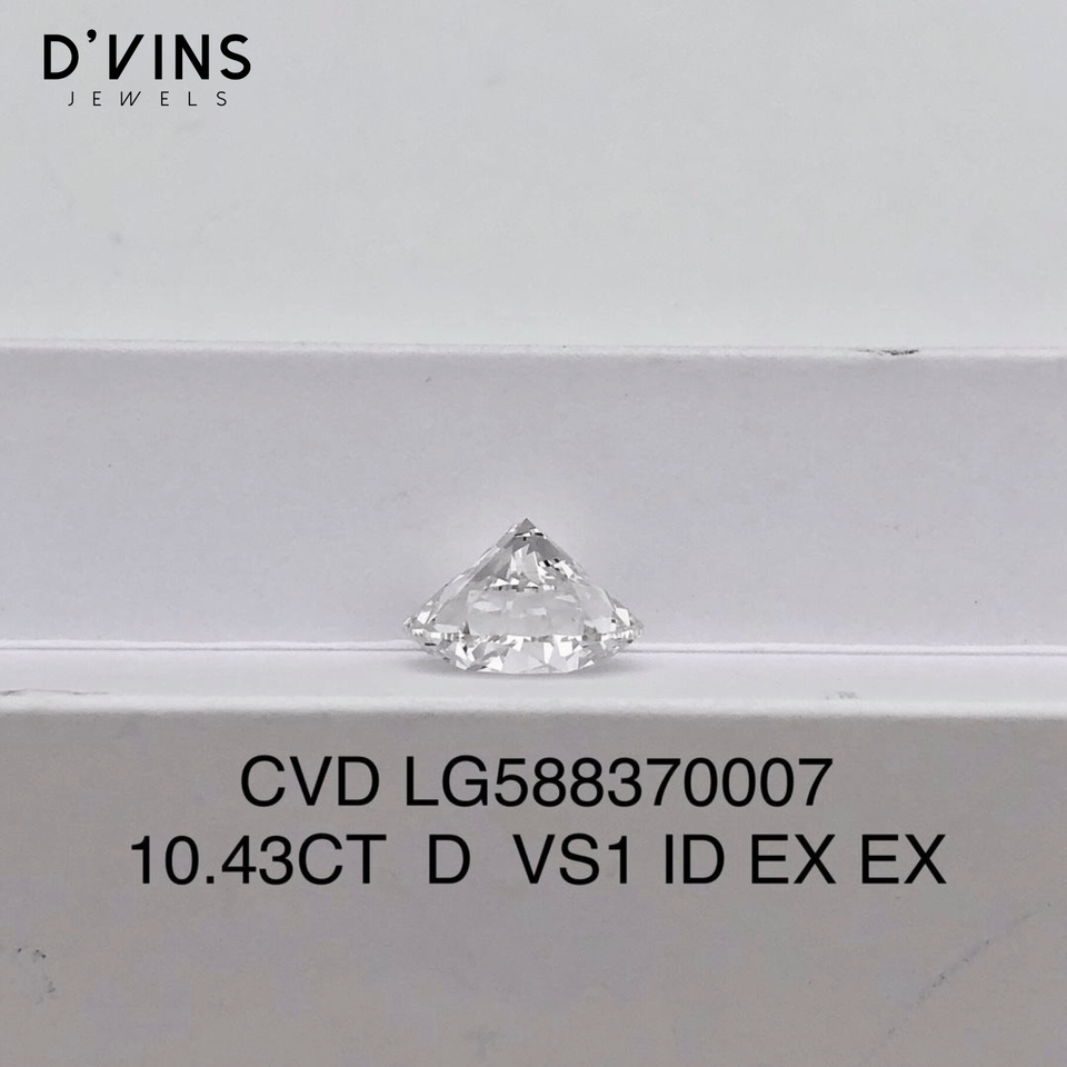 เพชร D'vins Jewels สังเคราะห์ (Lab Grown) เกรด G VVS2 น้ำหนัก 10.43 กะรัต รูปทรงกลมเจียระไนแบบบริลเลียนท์ ขายส่งสำหรับทำเครื่องประดับ