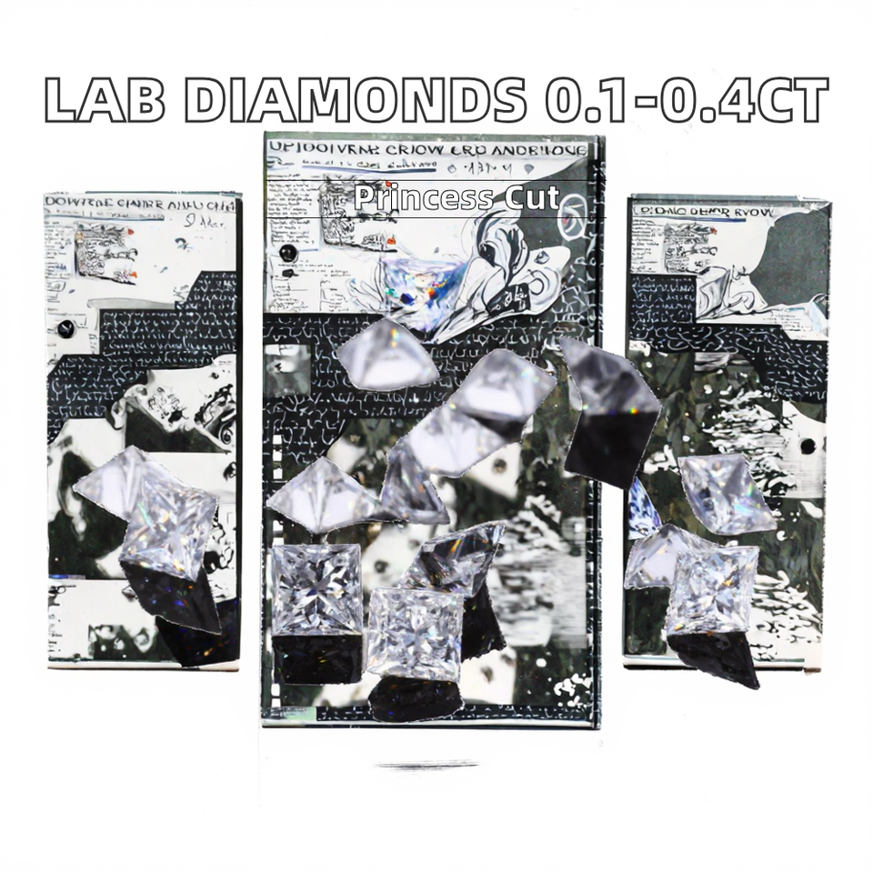 เพชรแล็บโกรว์สีขาวใส ขนาด 0.1 กะรัต 0.4 กะรัต คุณภาพเยี่ยม ทรงปรินเซส เมลี สำหรับขายส่งในกลุ่มเครื่องประดับ