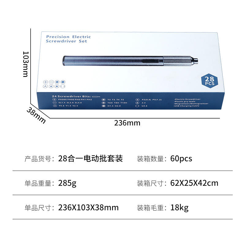 D004 Electric Screwdriver Set 238mm Battery Powered With Precision Bits For Diy Repair Tools