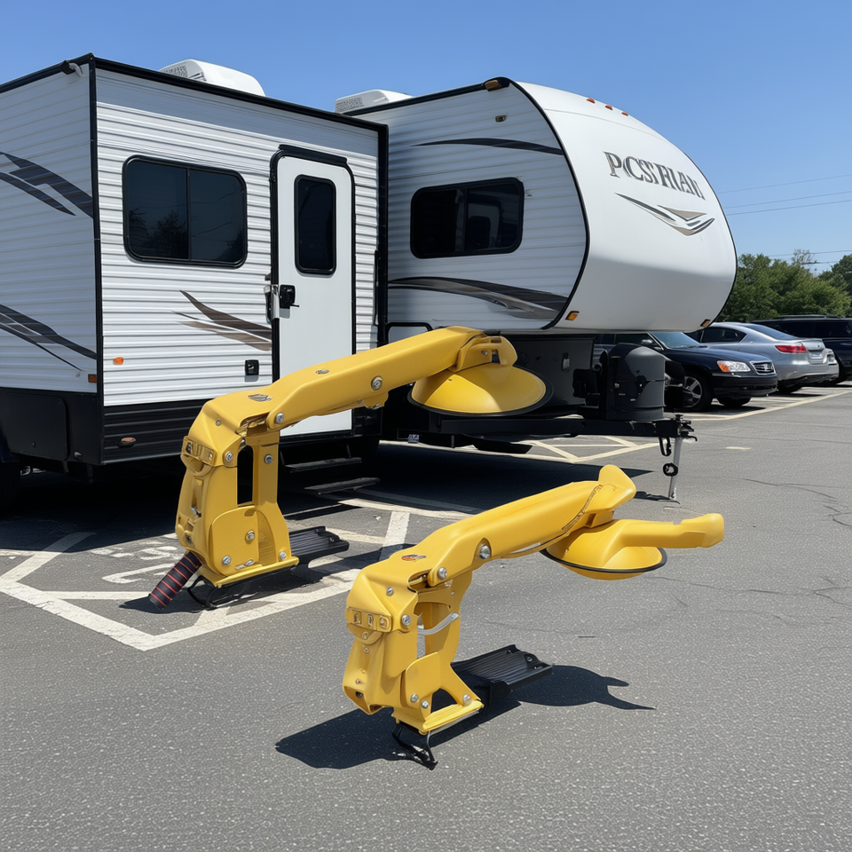 D0100H535V8 ชุดล็อคล้อรถพ่วง 2 ชิ้น ทำจากเหล็กอัลลอยด์ ป้องกันการโจรกรรม สำหรับรถพ่วง RV รถยนต์ SUV ช่วยให้จอดรถได้อย่างปลอดภัย ขนาด 10.5 นิ้ว