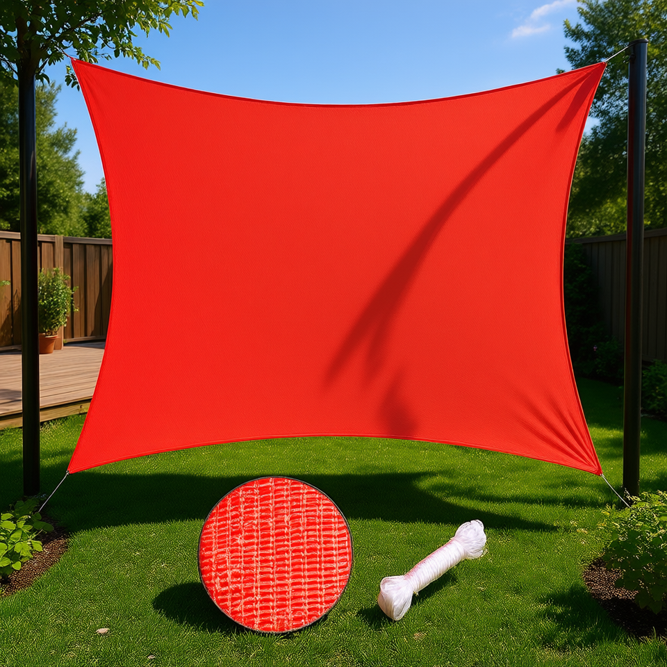 D0100HPWTAV ผ้าบังแดดทรงสี่เหลี่ยมผืนผ้า 16'x12' สีแดงแตงโม ป้องกันรังสียูวี HDPE สำหรับสวนกลางแจ้ง