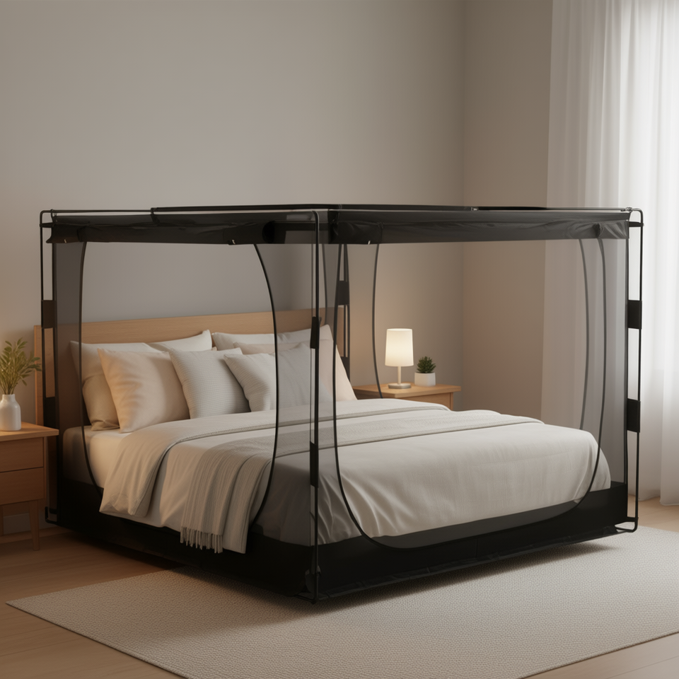 มุ้งครอบเตียงทรงสี่เหลี่ยมพร้อมมุ้งกันยุงแบบกันแสง สำหรับใช้ในบ้านทุกฤดู ขนาดสำหรับผู้ใหญ่ รุ่น D0100HRI0LP