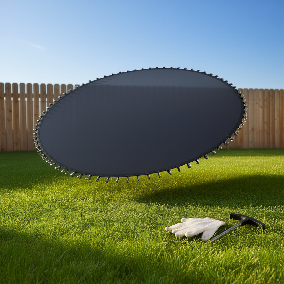 D0100HRSJST แผ่นรองแทรมโพลีนทรงกลมขนาด 14 ฟุต 72 วีริงส์ ไนลอนทนทาน สำหรับใช้กลางแจ้งหรือในบ้าน ใช้แทนแผ่นเดิมได้