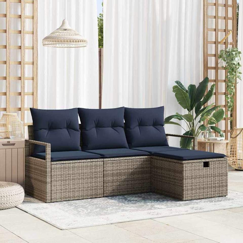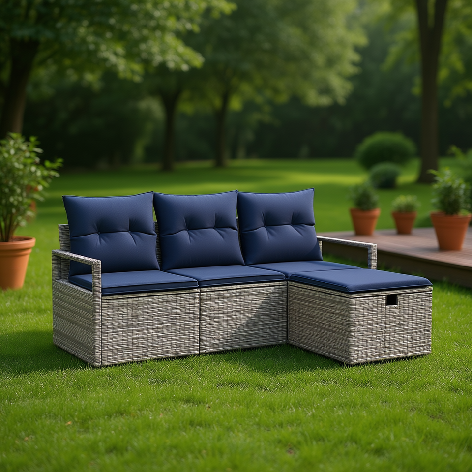 D0100X3ZACP ชุดโซฟาสวนหวายโพลี 4 ที่นั่ง พร้อมเบาะรองนั่งแบบปรับได้ ดีไซน์ร่วมสมัย