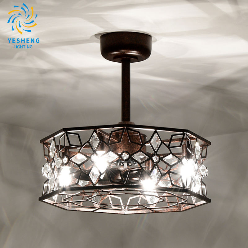 พัดลมเพดานโคมระย้า D061พร้อมรีโมท46ซม. 3สีโคมไฟระย้าแบบเรียบง่าย