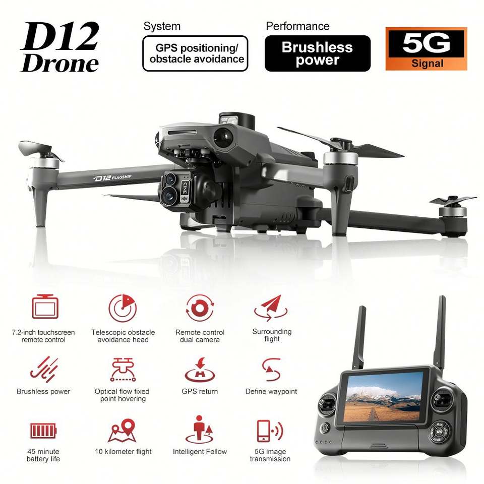 โดรน D12 RC 4K ระบบกันสั่น 3 แกน ระดับมืออาชีพ พร้อมระบบส่งสัญญาณดิจิตอล ระบบเลเซอร์หลบหลีกสิ่งกีดขวาง บินได้นาน 28 นาที ของเล่นโดรน