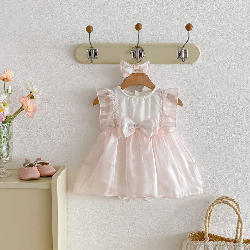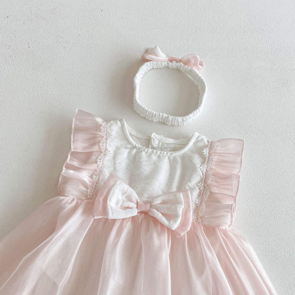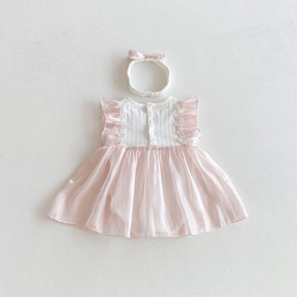 ชุดเดรสเจ้าหญิงฤดูร้อน แขนบานหวาน น่ารัก สำหรับเด็กผู้หญิงแรกเกิด ฉลองวันพระจันทร์เต็มดวง ฉลองครบ 100 วัน ฉลองวันเกิดครบรอบ 1 ปี ผ้าฝ้าย 100% รุ่น D1878