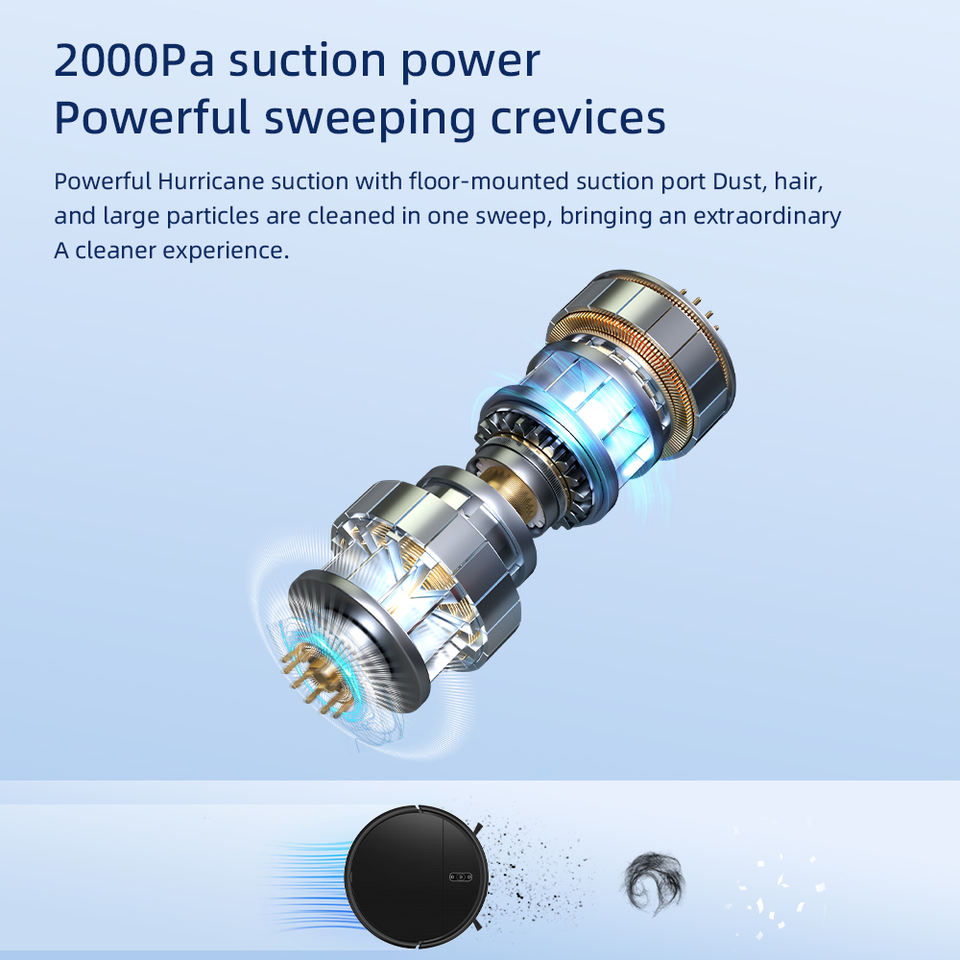 Alexa เครื่องดูดฝุ่นหุ่นยนต์อัตโนมัติ3-in-1, D2-007ำทางด้วยระบบไจโรสโคปทำความสะอาดขนสัตว์เลี้ยงแบบเปียกแห้งสำหรับโรงรถ