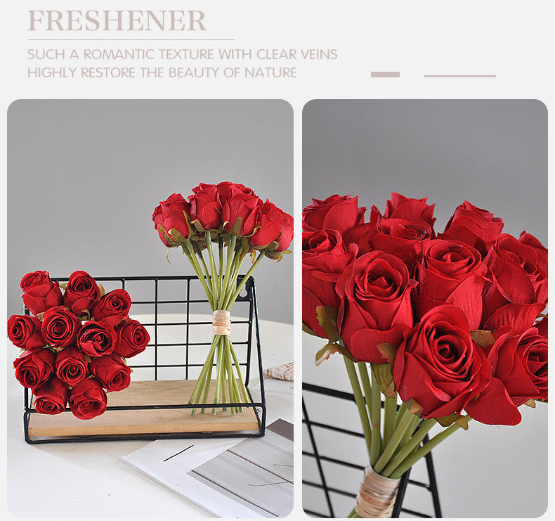 ช่อดอกกุหลาบปลอมขนาดพกพาสำหรับติดทางเดินงานแต่งงานของตกแต่งบ้านแบบ D224