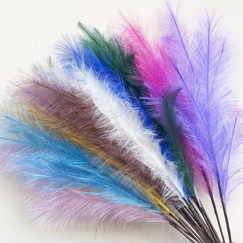 D226ไฟปลอมสำหรับตกแต่งบ้านและร้านค้าทุ่งหญ้าเทียมพร้อมขนนกหนานุ่มและสีชมพู