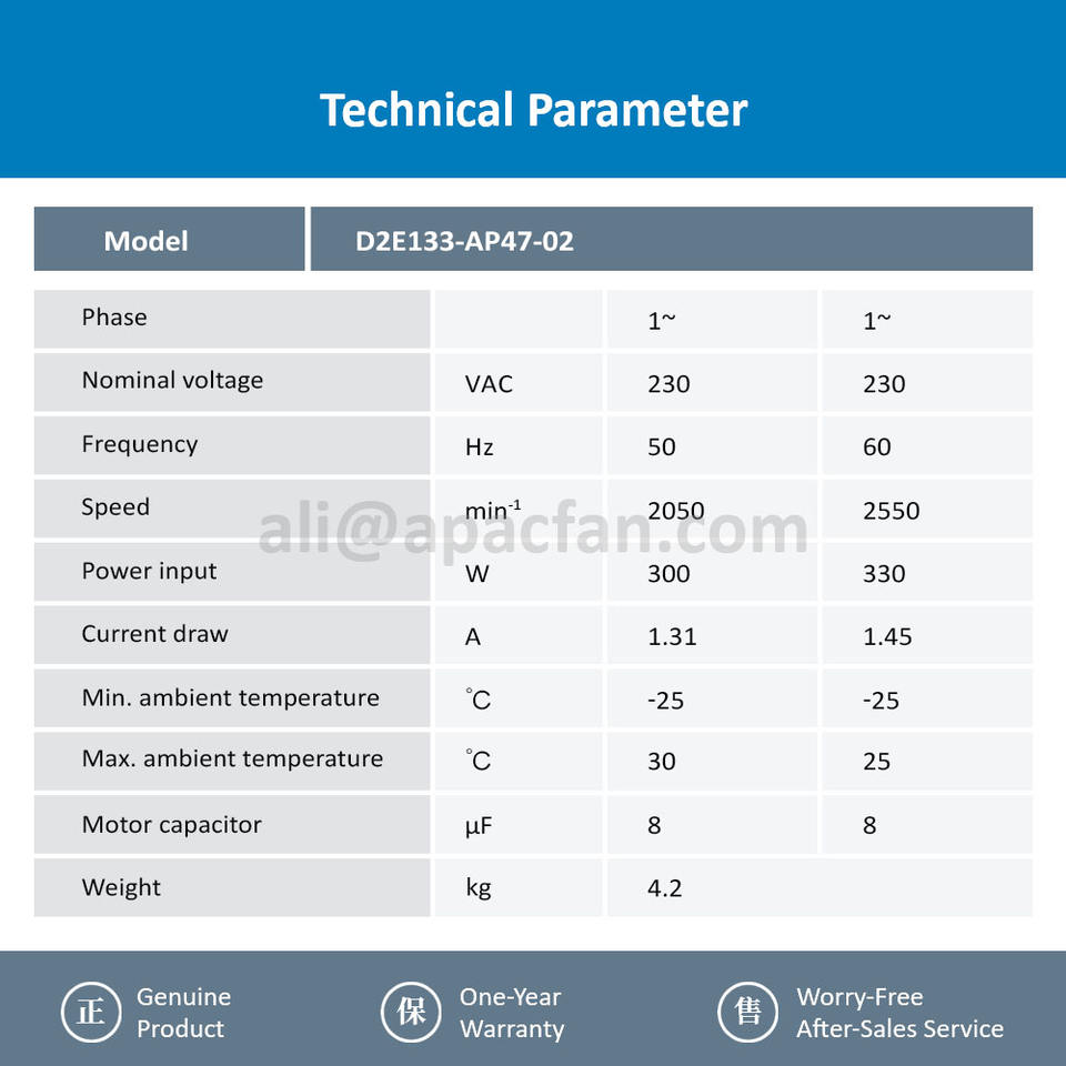 สำหรับ D2E146-AP47-02 230VAC 146มม. 300W 2050RPM 1.31A ช่องคู่อินเวอร์เตอร์พัดลมแรงเหวี่ยงมีลูกบอล